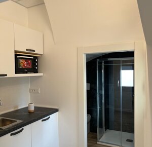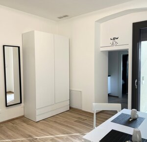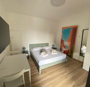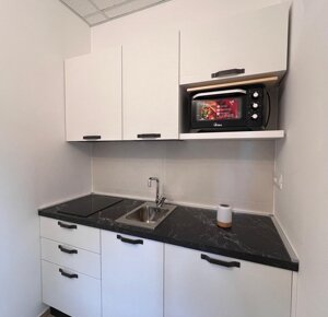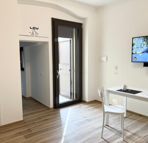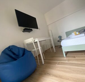Accogliente monolocale con angolo cottura separato dalla zona notte.