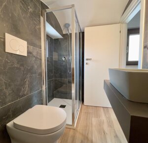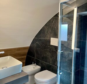 La doccia, integrata nella struttura preesistente, potrebbe risultare poco comoda per persone molto alte (p.e. oltre 190 cm),