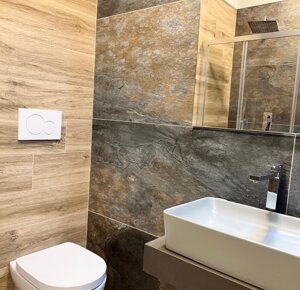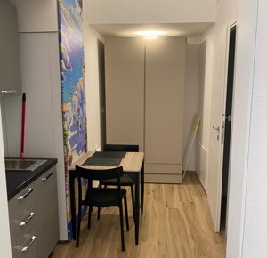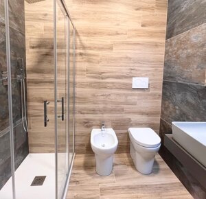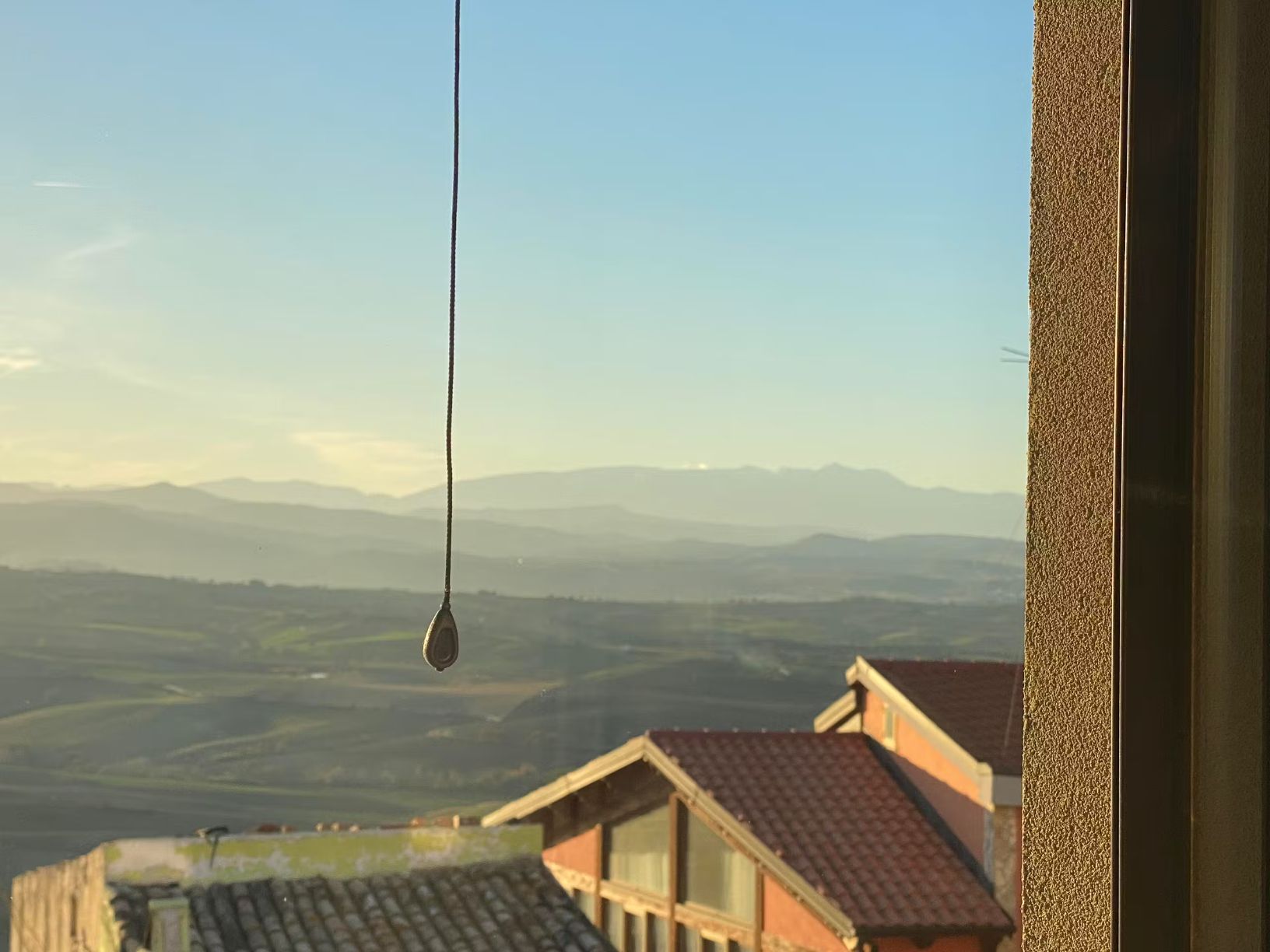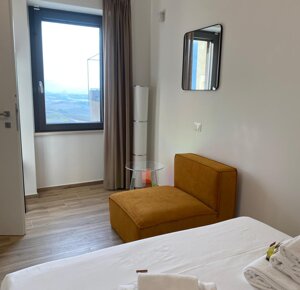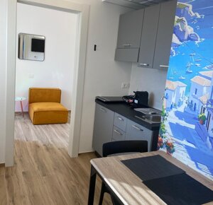 Camera da letto con piccola cucina separata e bagno privato. Vista vallata e montagna della Majella sullo sfondo.